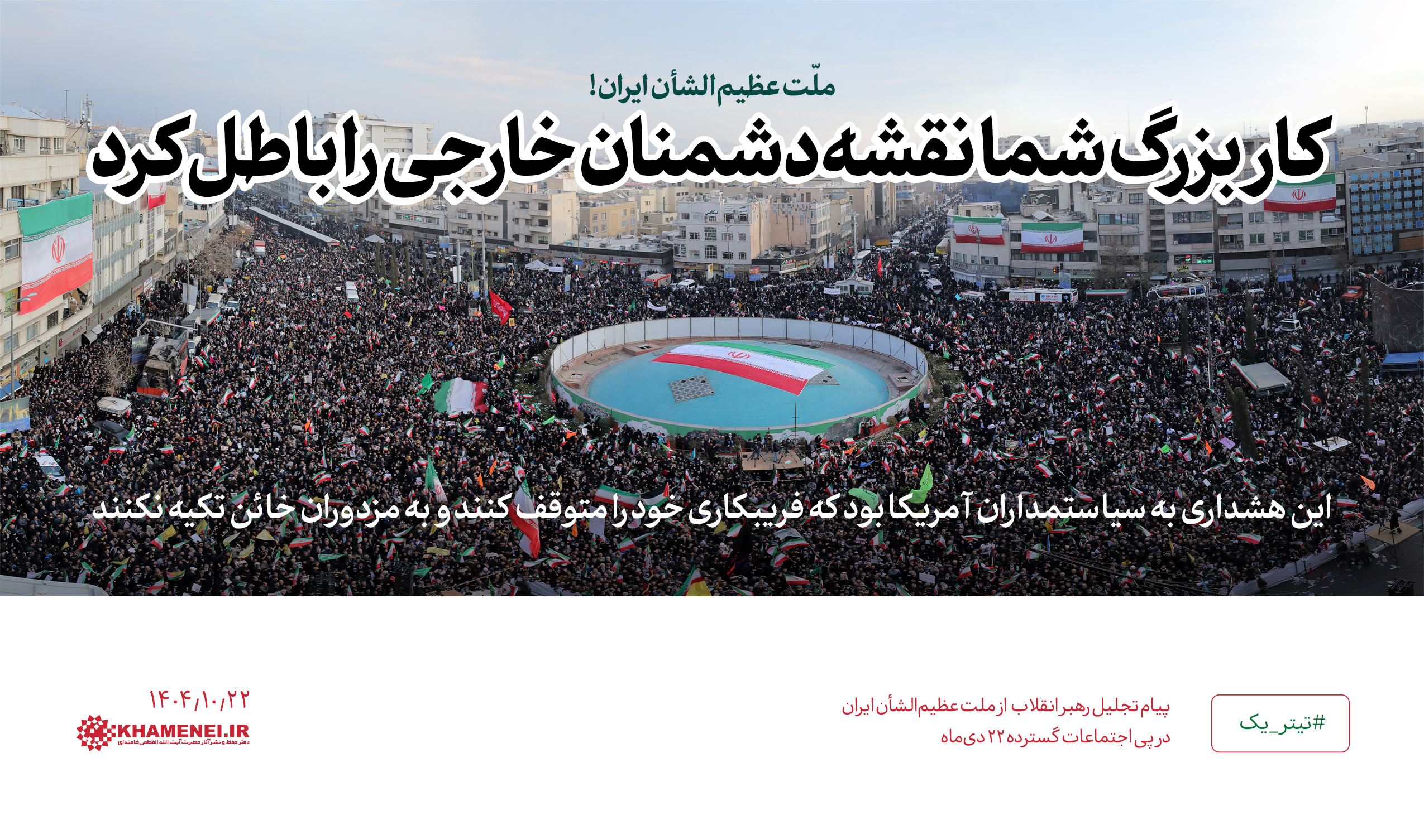 امام خامنهای 22 بهمن را روزی استثنایی و تاریخ ساز توصیف فرموده و با تأکید بر ماهیت ...